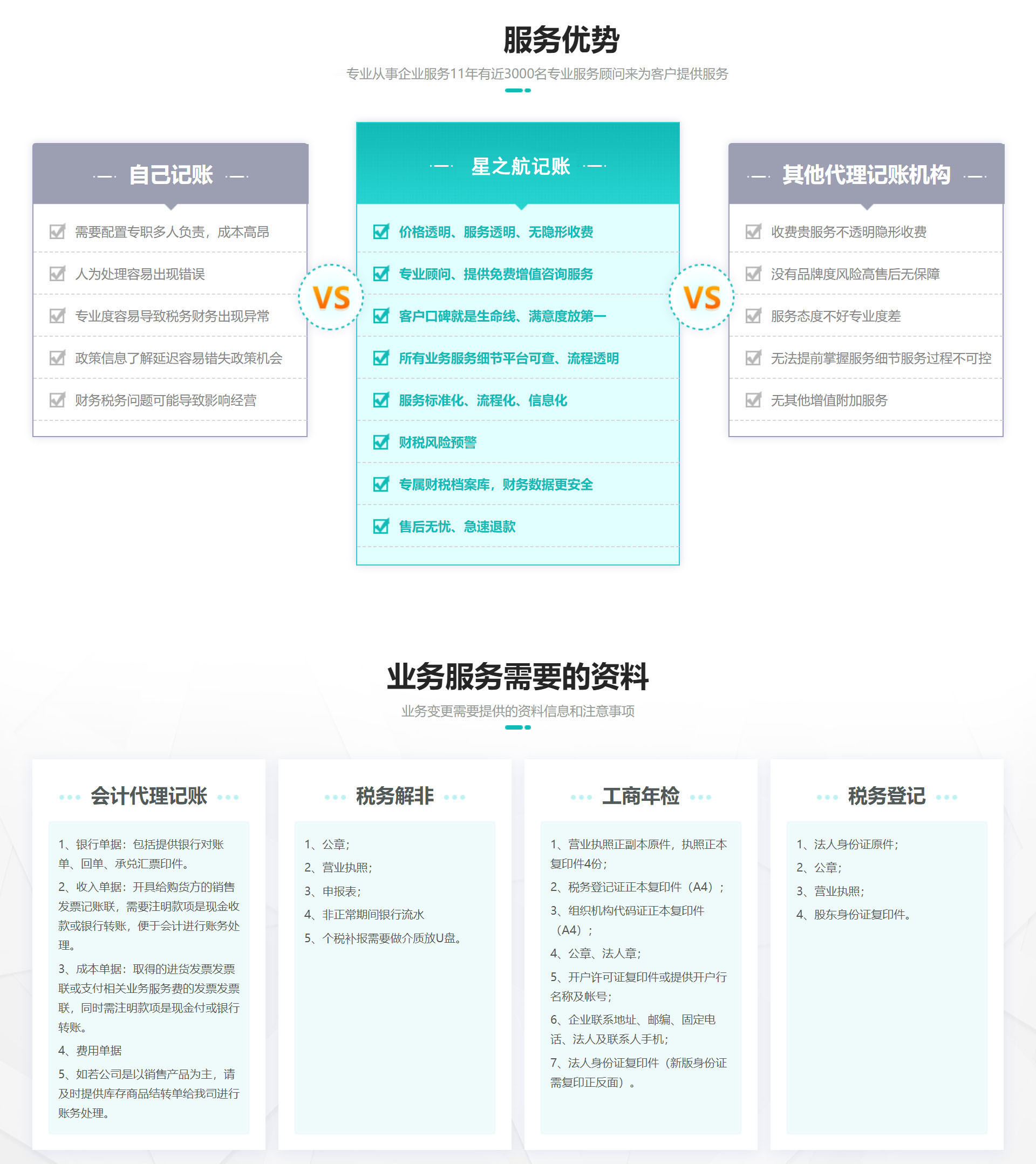 记账服务:审核原始凭证、建立企业电子帐、填制记账凭证、 登记会计账薄、编制会计报表、编制季度财务分析报告